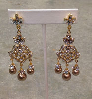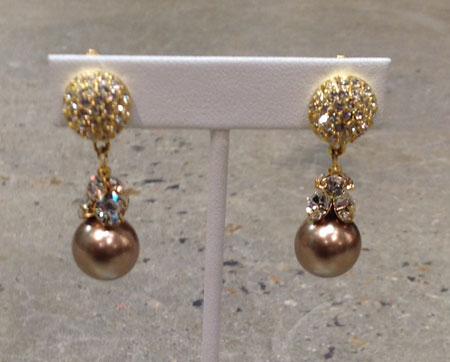 Bronze Pearl/Crystal/Gold Bella Grande Drop Earring (post or clip) style no. E6207-656 :: $45 |