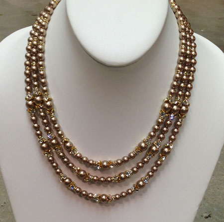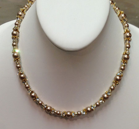 Bronze Pearl/Crystal/Gold Victoria Necklace style no. N3402-656 :: $198 |