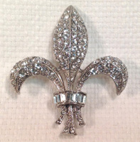 Crystal/Silver Fleur de Lis Pin (2″h × 2″w) style no. P067-032 :: $40 |