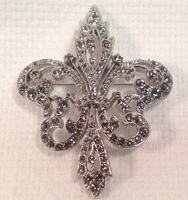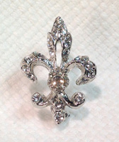 Crystal/Silver Small Fleur de Lis Pin (1” diameter) style no. P509-032 :: $15 |