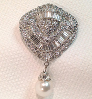 White Pearl/Crystal/Silver Shield Pin (2” diameter) style no. P503-617 :: $60 |