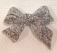 Crystal/Silver Deco Bow Pin (1.5″h × 2″w) style no. P506-032 :: $36 |