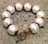 Cotton Ball Pearl/Antique Gold 18mm Toggle Bracelet style no. BR1049-063 :: $30 |