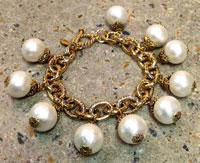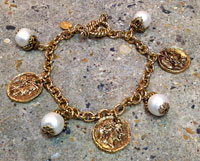 Cotton Ball Pearl/Antique Gold Roma Charm Bracelet style no. BR1682-063 :: $30 |