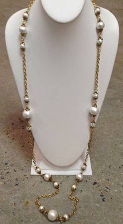 Cotton Ball Pearl/Antique Gold 46″L Station Necklace style no. N3682-063 :: $88 |