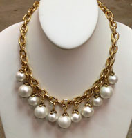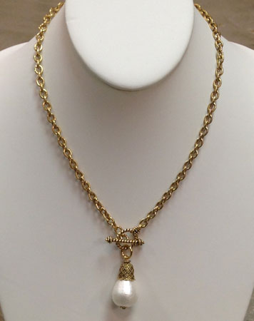 Cotton Ball Pearl/Antique Gold 36″ Link Necklace style no. N3681-063 :: $138 |