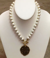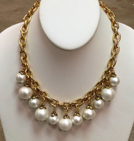 Cotton Ball Pearl/Antique Gold 30″ Pendant Necklace style no. N3687-063 :: $48 |