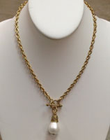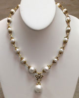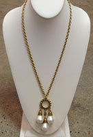 Cotton Ball Pearl/Antique Gold Teardrop Necklace style no. N3688-063 :: $24 |