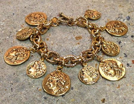Antique Gold Roman Coin Charm Bracelet style no. BR1690-003 :: $48 |