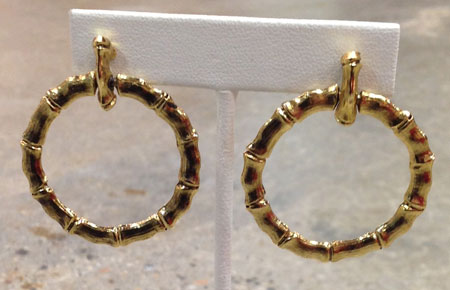 Antique Gold Bamboo Door Knocker Earring (post or clip) style no. E3999-003 :: $24 |