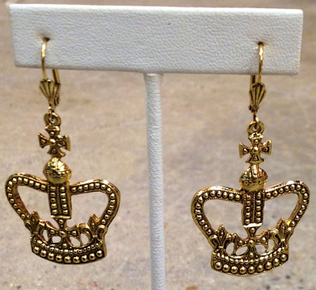 Antique Gold Crown Leverback Earring style no. E5856-003 :: $28 |