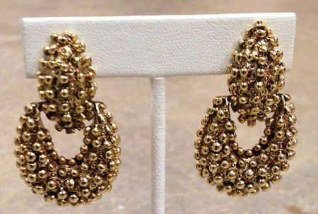 Antique Gold Shot Bead Door Knocker Earring (post or clip) style no. E6093-003 :: $30 |