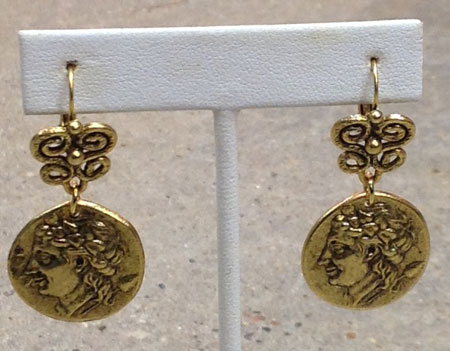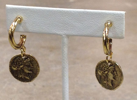 Antique Gold Coin Portrait Earring style no. E6217-003 :: $28 |