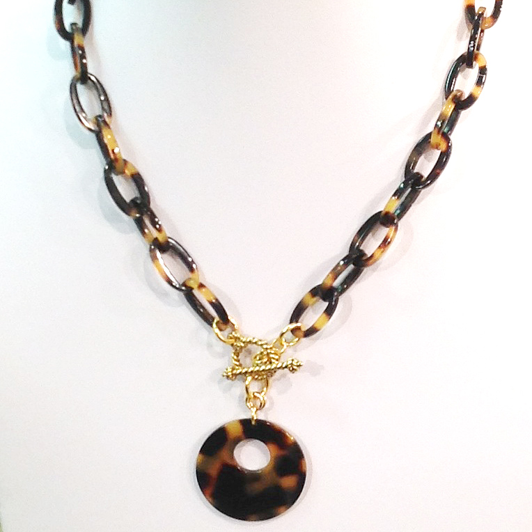 Tokyo Tortoise/Antique Gold 17”L Donut Pendant Necklace style no. N3037-693 :: $48 |