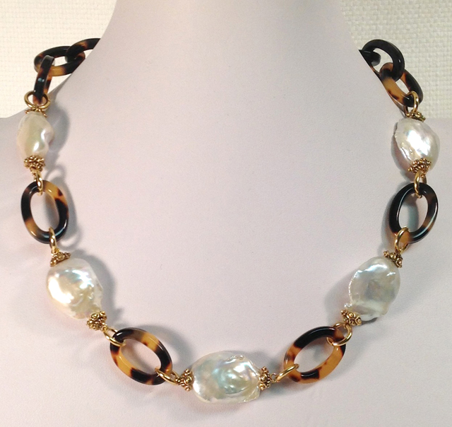 Tokyo Tortoise/Freshwater Pearl/Antique Gold Link Necklace style no. N3923-3008 :: $98 |