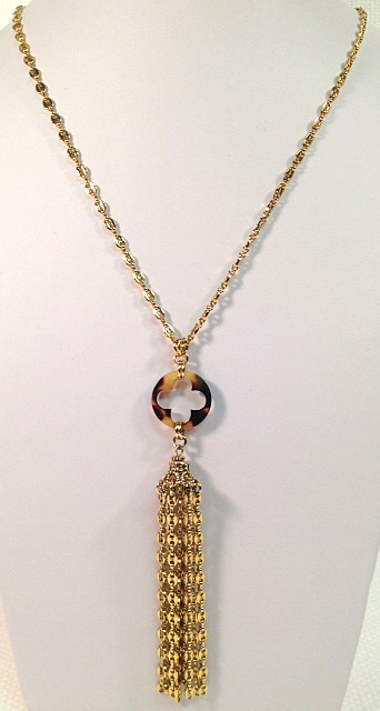 Tokyo Tortoise/Antique Gold 30"L Quatrefoil Tassel Necklace style no. N3976-693 :: $48 |