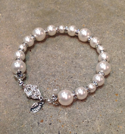 White Pearl/Crystal/Silver 12mm Bracelet style no. BR1678-617 :: $30 |