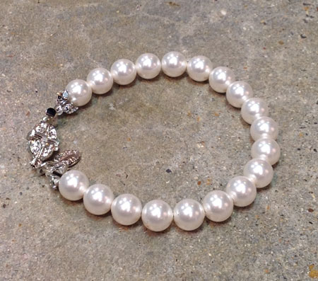 White Pearl/Crystal/Silver 8mm Bracelet style no. BR1677-617 :: $28 |