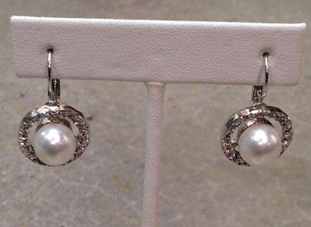 White Pearl/Crystal/Silver Leverback Earring style no. E6184-617 :: $30 |