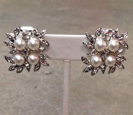 White Pearl/Crystal/Silver Rita Earring (post or clip) style no. E5809-617 :: $30 |